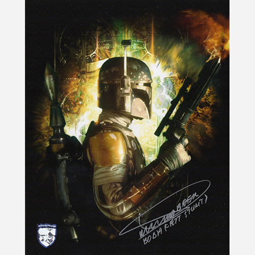 8x10 Star Wars photo of Boba Fett signed by Dickey Beer with Character Name in July of 2021 in Plano, TX. This comes with our numbered hologram COA sticker for authenticity.