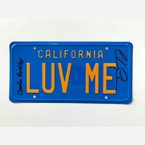Life-size prop replica National Lampoon's Vacation LUV ME license plate signed by Chevy Chase in October of 2021 in Los Angeles, CA, and by Christie Brinkley in May of 2022 in Sag Harbor, NY. This comes with our numbered hologram COA sticker for authenticity.