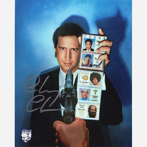 8x10 Fletch photo signed by Chevy Chase in September of 2022 in Hollywood, CA. This comes with our numbered hologram COA sticker for authenticity.