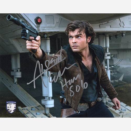 8x10 Solo: A Star Wars Story photo of Han Solo signed by Alden Ehrenreich with Character Name in November of 2021 in Los Angeles, CA. This comes with our numbered hologram COA sticker for authenticity.
