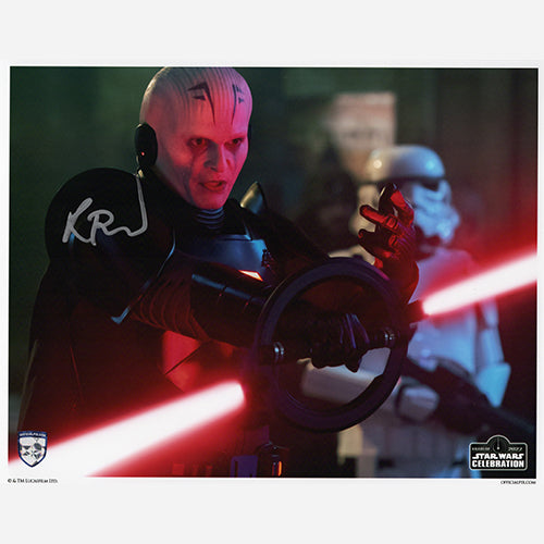 Officially licensed Star Wars Celebration Anaheim 2022 11x14 Star Wars: Obi-Wan Kenobi photo of the Grand Inquisitor signed by Rupert Friend in May of 2022 in Anaheim, CA. This comes with our numbered hologram COA sticker for authenticity.