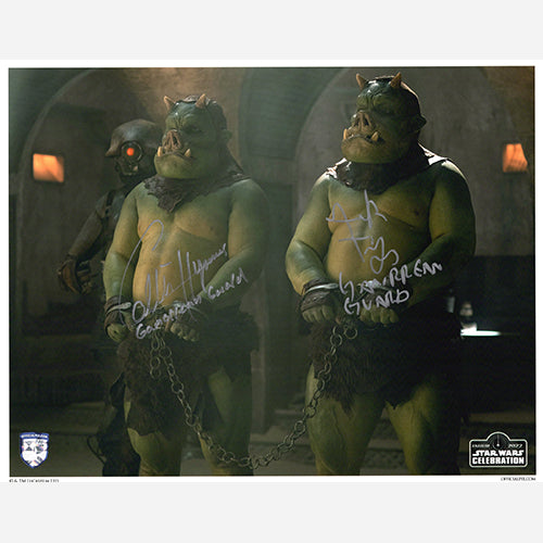 Officially licensed Star Wars Celebration Anaheim 2022 11x14 Star Wars: The Book of Boba Fett photo of Gamorrean Guards signed by Collin Hymes & Frank Trigg with Character Names in May of 2022 in Anaheim, CA. This comes with our numbered hologram COA sticker for authenticity.