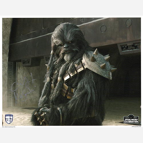 Officially licensed Star Wars Celebration Anaheim 2022 11x14 Star Wars: The Book of Boba Fett photo of Krrsantan signed by Carey Jones with Character Name in May of 2022 in Anaheim, CA. This comes with our numbered hologram COA sticker for authenticity.