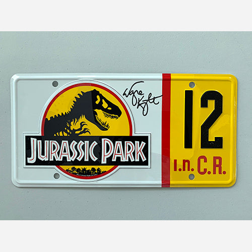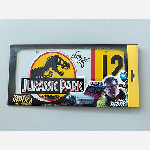 Full-size prop replica Legacy Collection Jurassic Park Dennis Nedry license plate signed by Wayne Knight in March of 2021 in Los Angeles, CA. This comes with our numbered hologram COA sticker for authenticity.