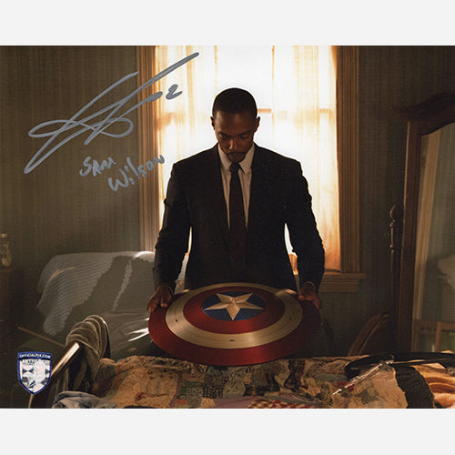 8x10 The Falcon and the Winter Soldier photo of Sam Wilson signed by Anthony Mackie with Character Name in January of 2022 in New Orleans, LA. This comes with our numbered hologram COA sticker for authenticity.