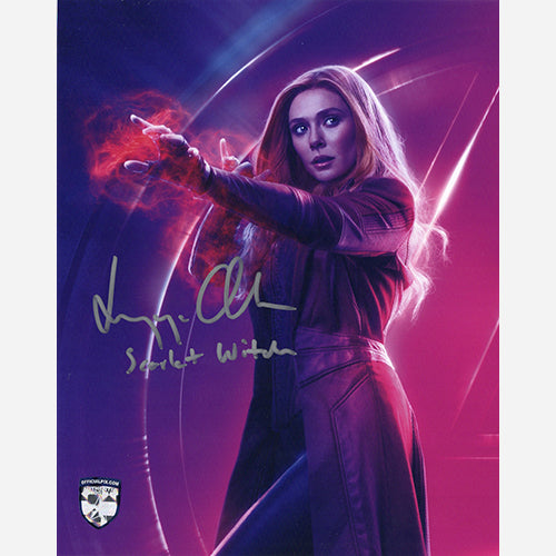 8x10 Avengers: Infinity War photo of Wanda Maximoff signed by Elizabeth Olsen with Character Name in June of 2021 in Sherman Oaks, CA. This comes with our numbered hologram COA sticker for authenticity.