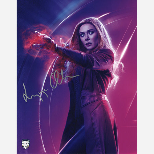 11x14 Avengers: Infinity War photo of Wanda Maximoff signed by Elizabeth Olsen in June of 2021 in Sherman Oaks, CA. This comes with our numbered hologram COA sticker for authenticity.