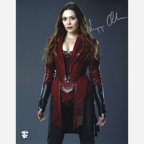 11x14 Avengers: Age of Ultron photo of Wanda Maximoff signed by Elizabeth Olsen in June of 2021 in Sherman Oaks, CA. This comes with our numbered hologram COA sticker for authenticity.