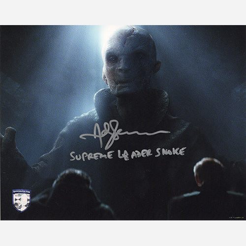 8x10 Star Wars: The Force Awakens photo of Supreme Leader Snoke signed by Andy Serkis with Character Name in January of 2022 in London, UK. This comes with our numbered hologram COA sticker for authenticity.