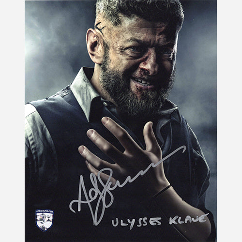 8x10 Black Panther photo of Ulysses Klaue signed by Andy Serkis with Character Name in January of 2022 in London, UK. This comes with our numbered hologram COA sticker for authenticity.
