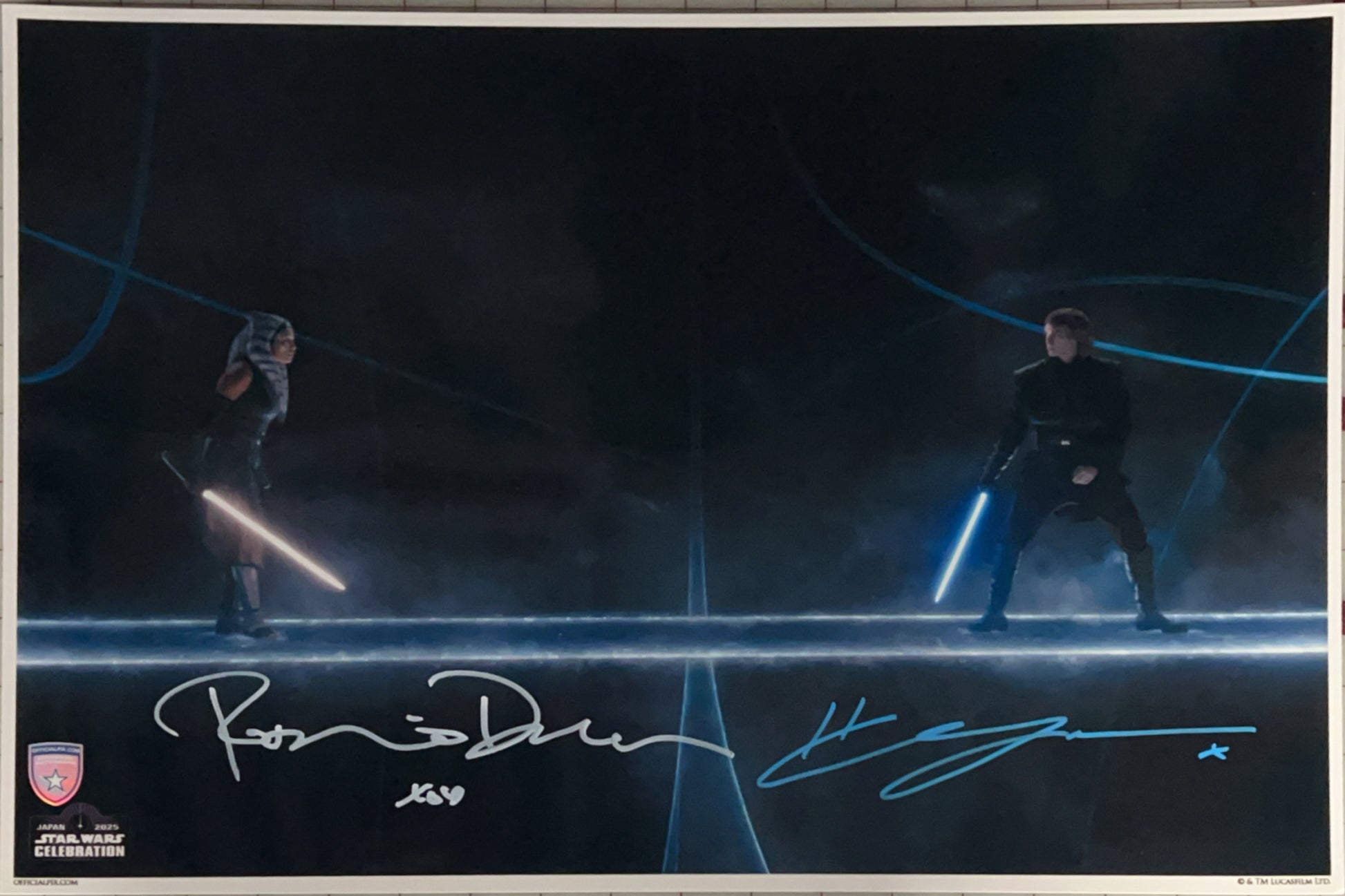 Officially licensed Star Wars Celebration Japan 2025 metallic photo signed by Hayden Christensen and Rosario Dawson in April of 2025 in Tokyo, Japan. All prints come with Premium Authentication.