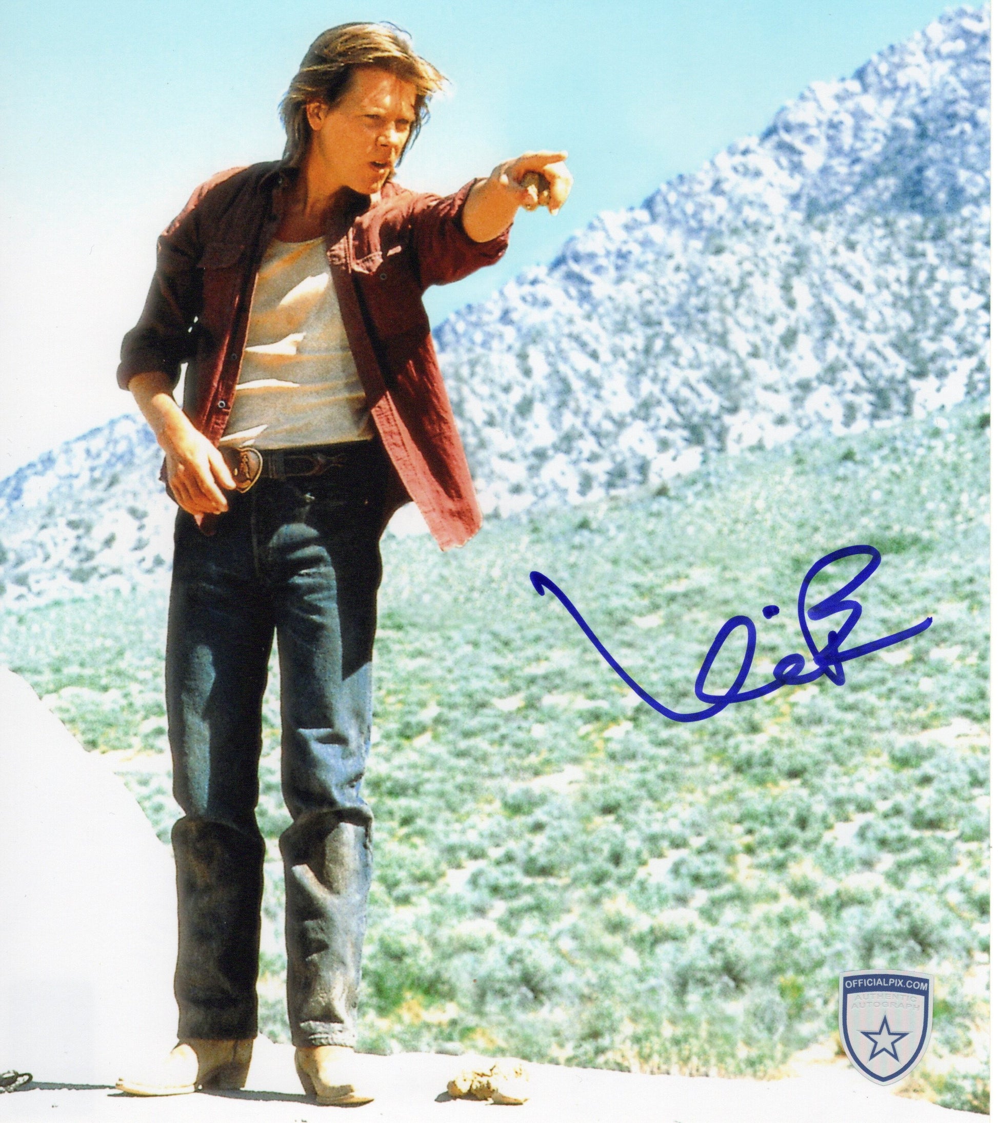 8x10 Tremors photo of Kevin Bacon signed by Kevin Bacon in June of 2024 in Los Angeles, CA. This comes with Premium Authentication.