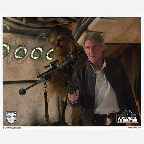 Officially licensed Star Wars Celebration Anaheim 2022 8x10 Star Wars: The Force Awakens photo of Chewbacca & Han Solo signed by Joonas Suotamo in May of 2022 in Anaheim, CA. This comes with our numbered hologram COA sticker for authenticity.