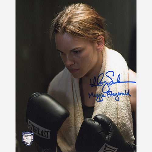 8x10 Million Dollar Baby photo of Maggie Fitzgerald signed by Hilary Swank with Character Name in January of 2022 in Beverly Hills, CA. This comes with our numbered hologram COA sticker for authenticity.