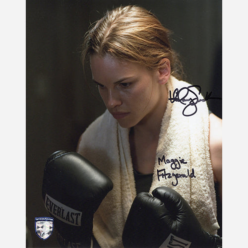 8x10 Million Dollar Baby photo of Maggie Fitzgerald signed by Hilary Swank with Character Name in January of 2022 in Beverly Hills, CA. This comes with our numbered hologram COA sticker for authenticity.