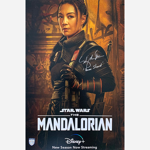 12x18 The Mandalorian photo of Fennec Shand signed by Ming-Na Wen with Character Name in March of 2021 in Calabasas, CA. This comes with our numbered hologram COA sticker for authenticity.