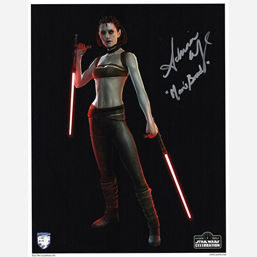 Officially licensed Star Wars Celebration Anaheim 2022 11x14 Star Wars: The Force Unleashed photo of Maris Brood signed by Adrienne Wilkinson with Character Name in May of 2022 in Anaheim, CA. This comes with our numbered hologram COA sticker for authenticity.